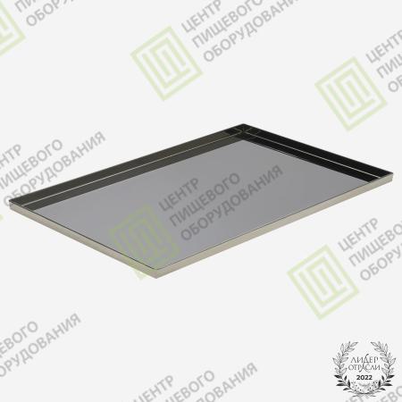 Противень с четырьмя бортами имеет высокую прочность и стойкость к коррозии, что делает его идеальным для использования в пищевой промышленности.
